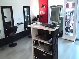 Carla invited us in her hair saloon. We closed the salon before to be bothered by customers, and starts to touch her little pussy and put our dicks in her mouth..