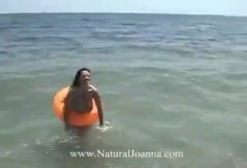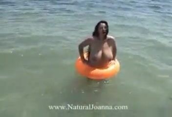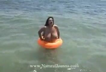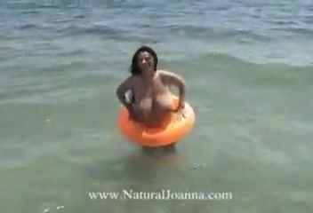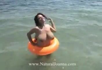 H cup natural big boobs supermodel playing on the beach topless