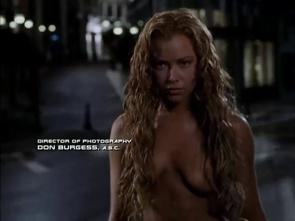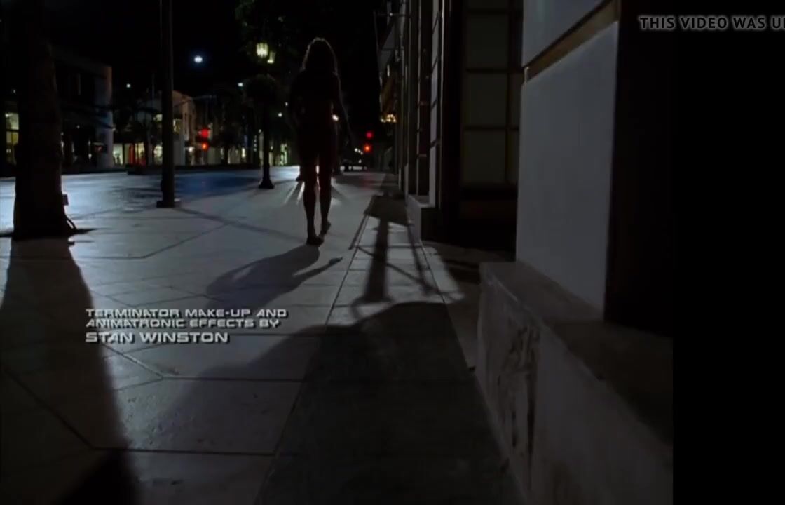 In this brief clip from the opening titles of the third Terminator movie, Rise of the Machines, actress Kristanna Loken materialises totally nude, then crosses the highway to steal clothes and a car.