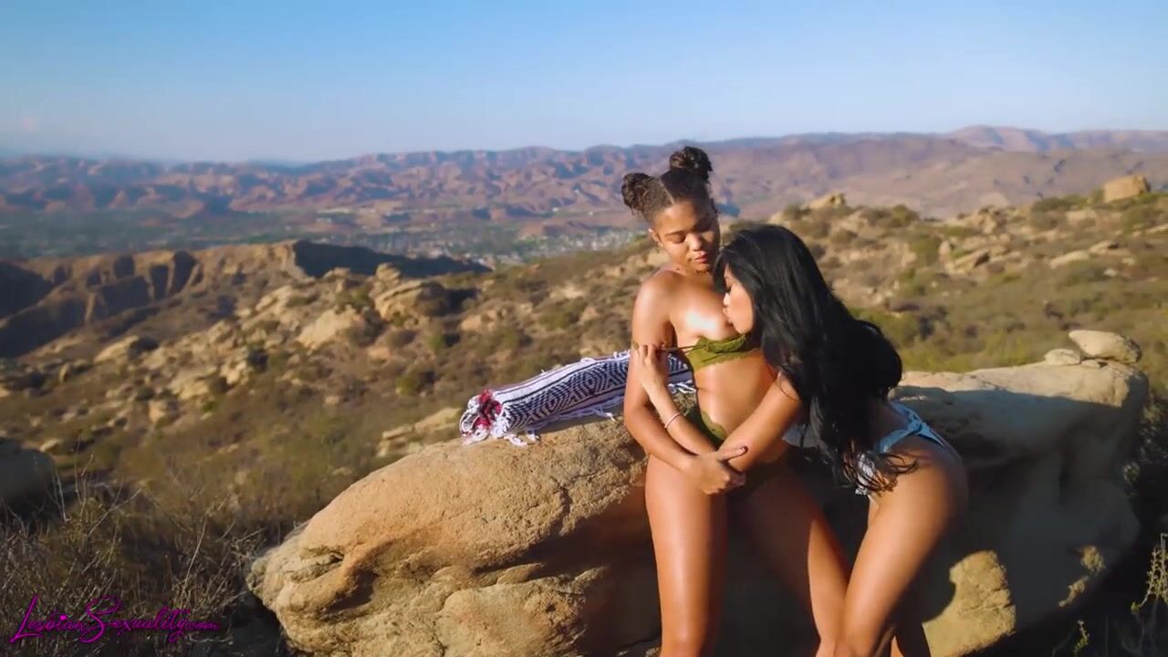 Asian lesbian Ember Snow seduces her Ebony girlfriend Michelle Anderson and gives her the most satisfying orgasm under the blue skies!