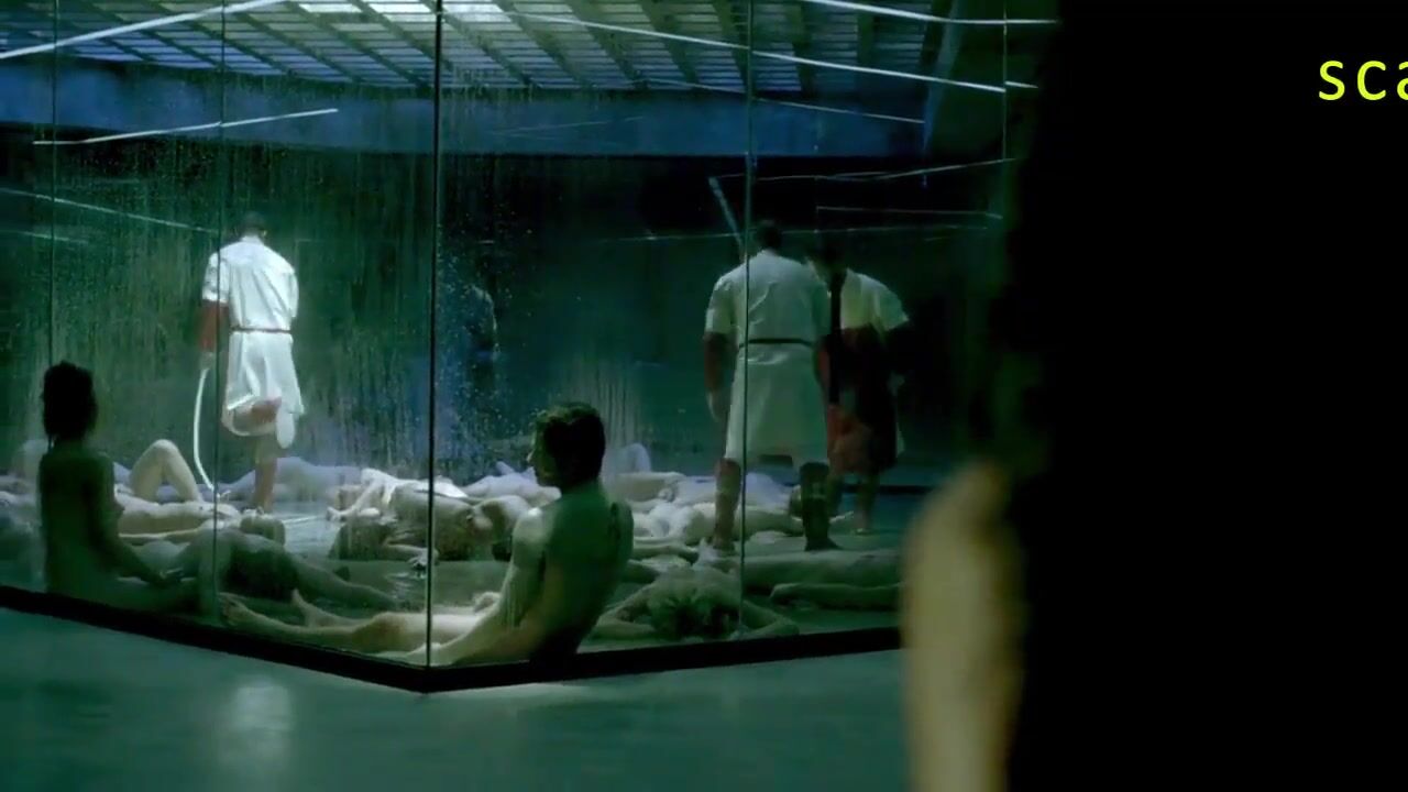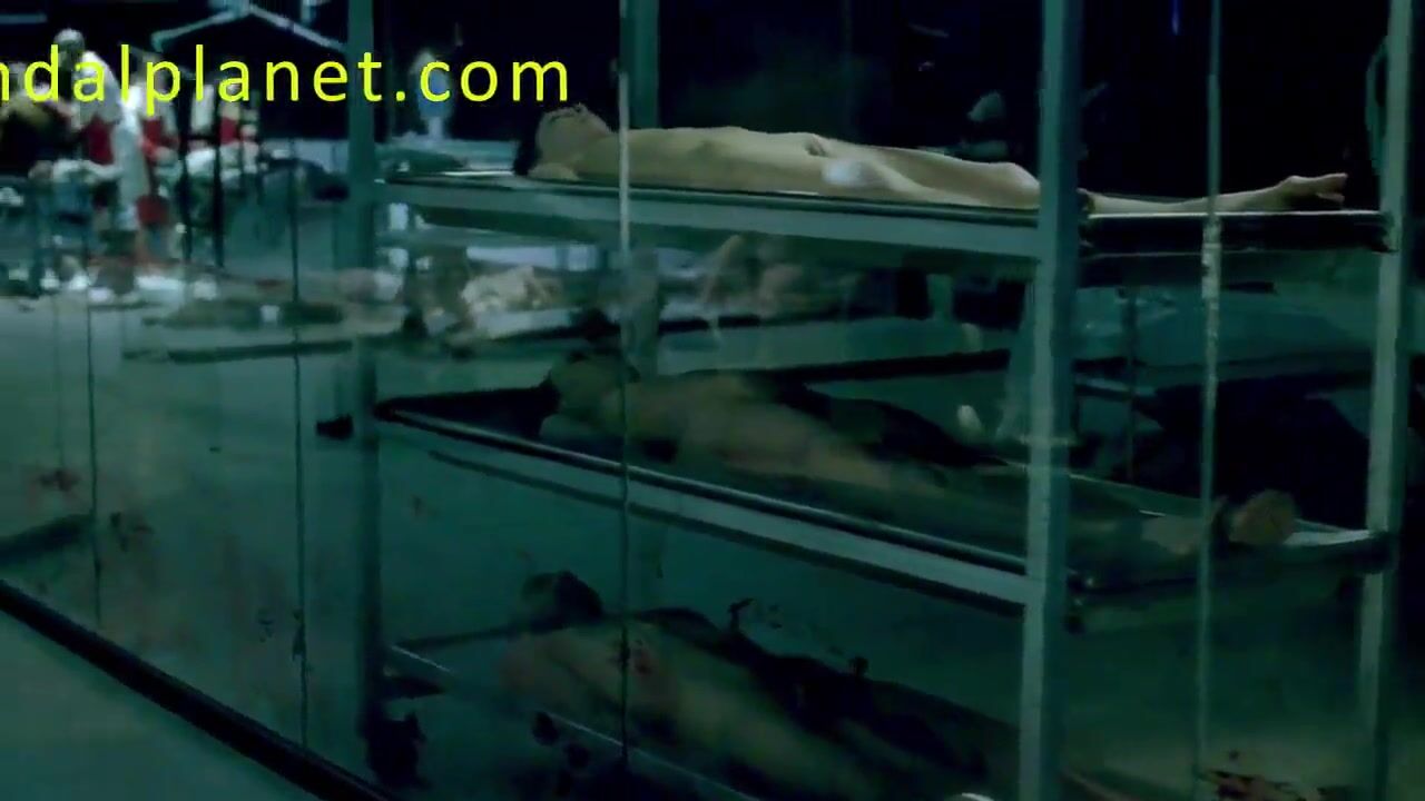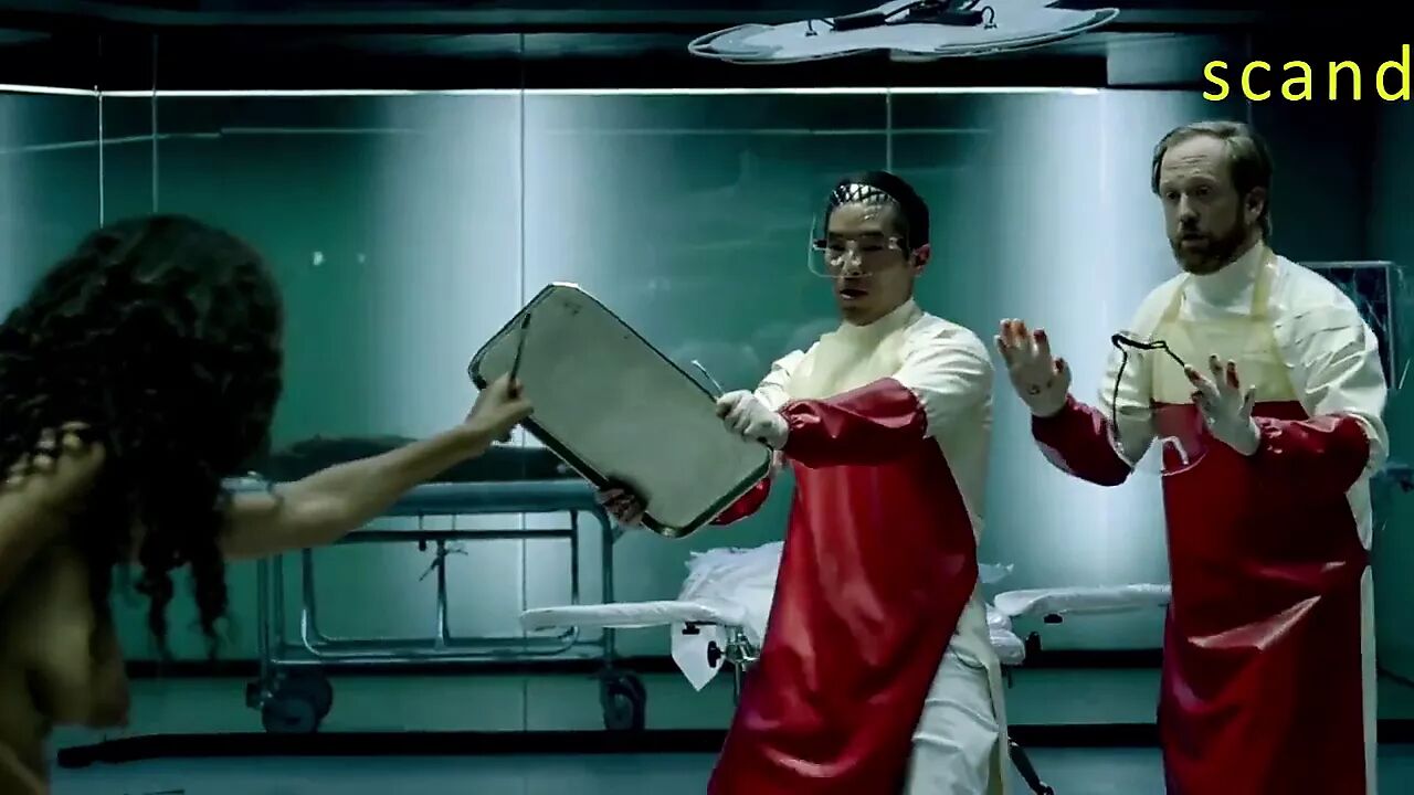 Thandie Newton nude boobs in Westworld TV show as she walks through the dark halls.
