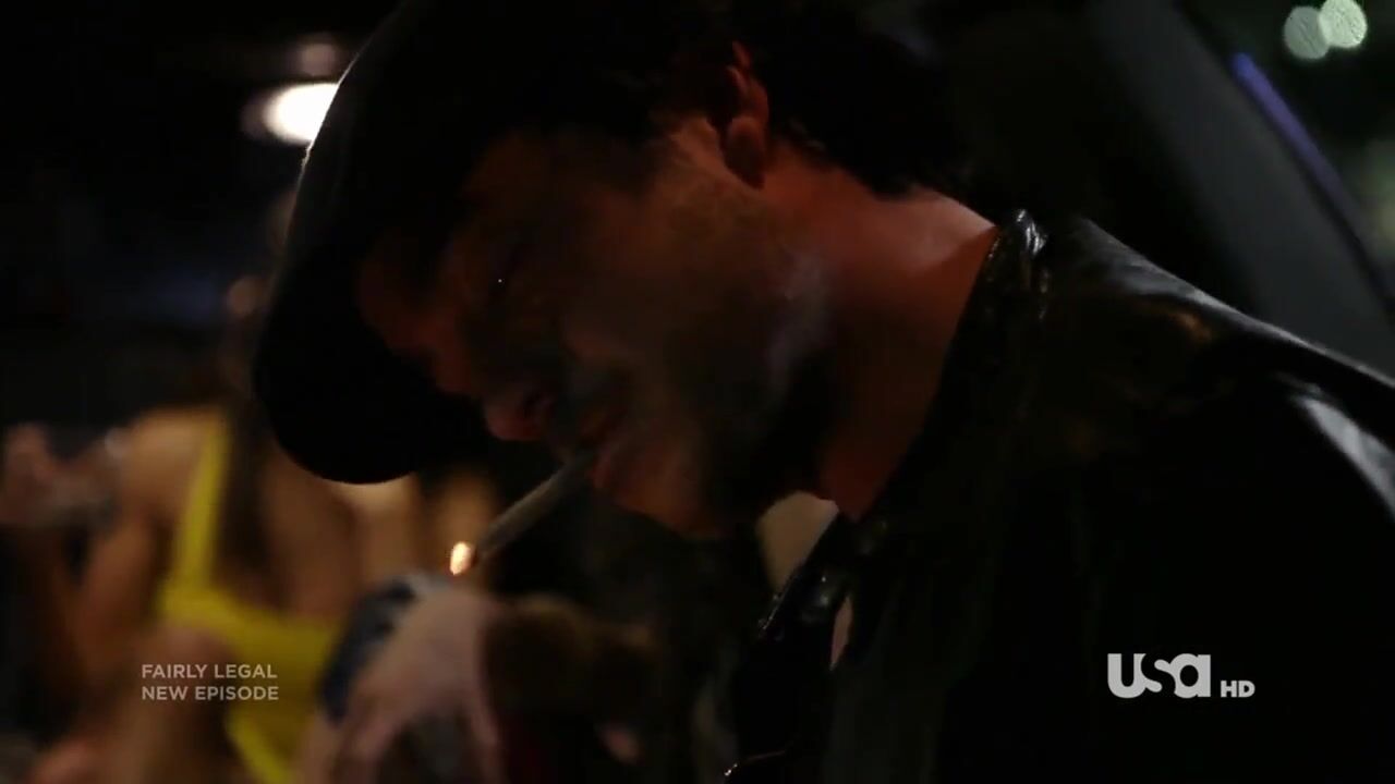 Sarah Shahi first seen making out with a guy and then we see her wrapped in skimpy yellow towel as she walks through the house. From Fairly Legal.