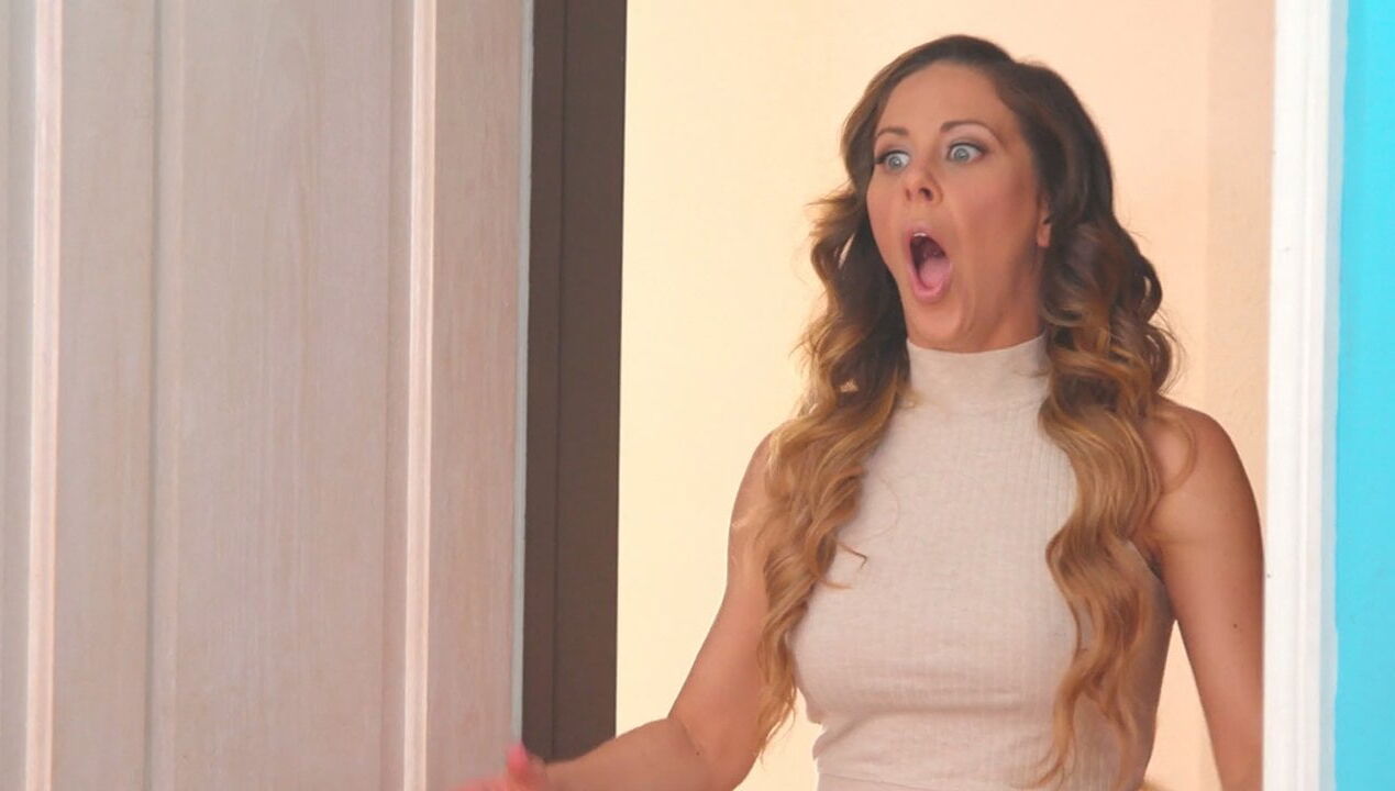 A young woman, Haley Reed, is in her room pleasuring herself. Her step-mom, Cherie DeVille, walks in without knocking. They are shocked and both scream and the rest, as they say, is history.