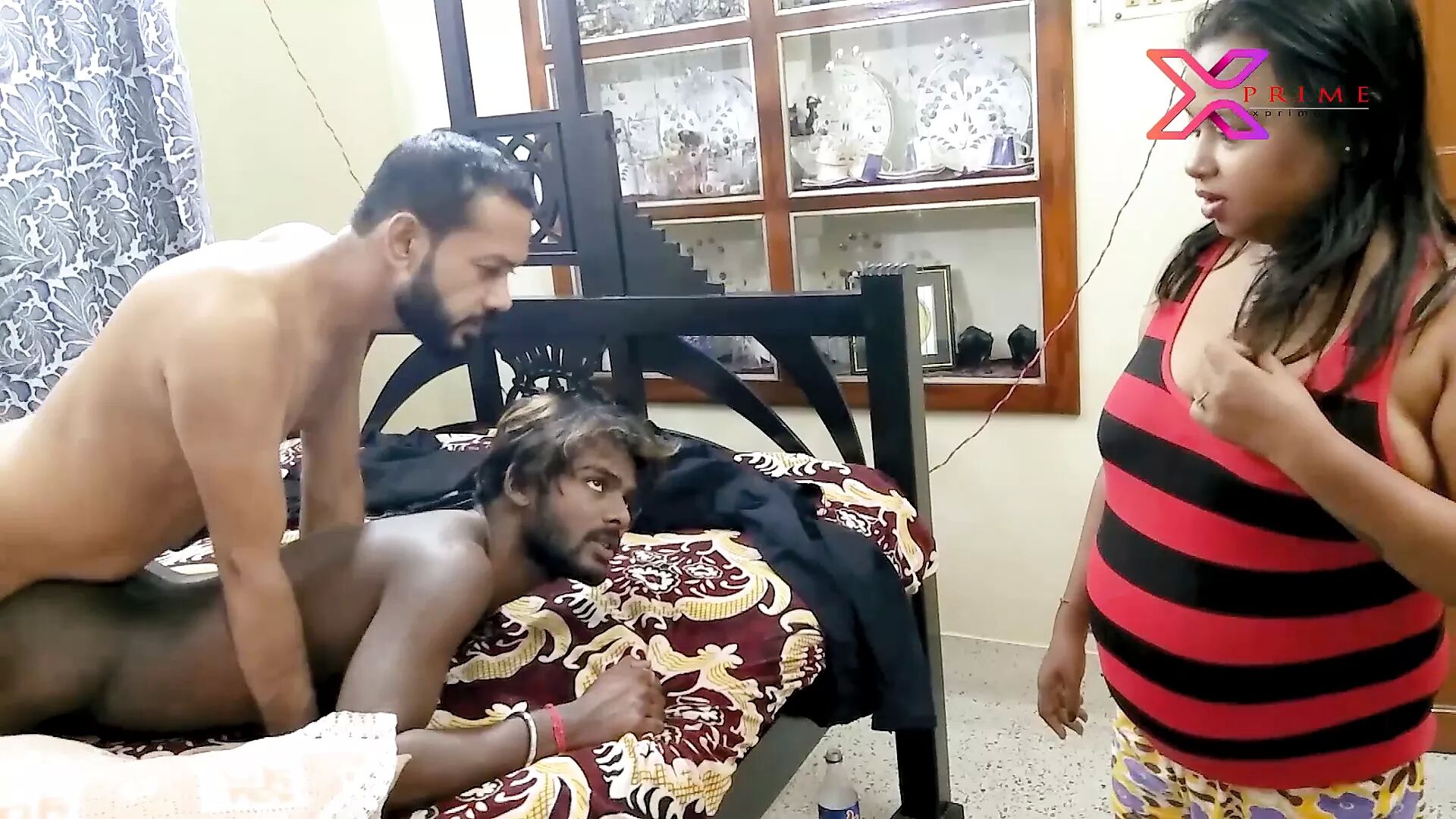 Gay friend come to join in awesome threesome party - wife shared her full soul to the stranger in front of her husband. And both the friends make her body full of cum at the same time