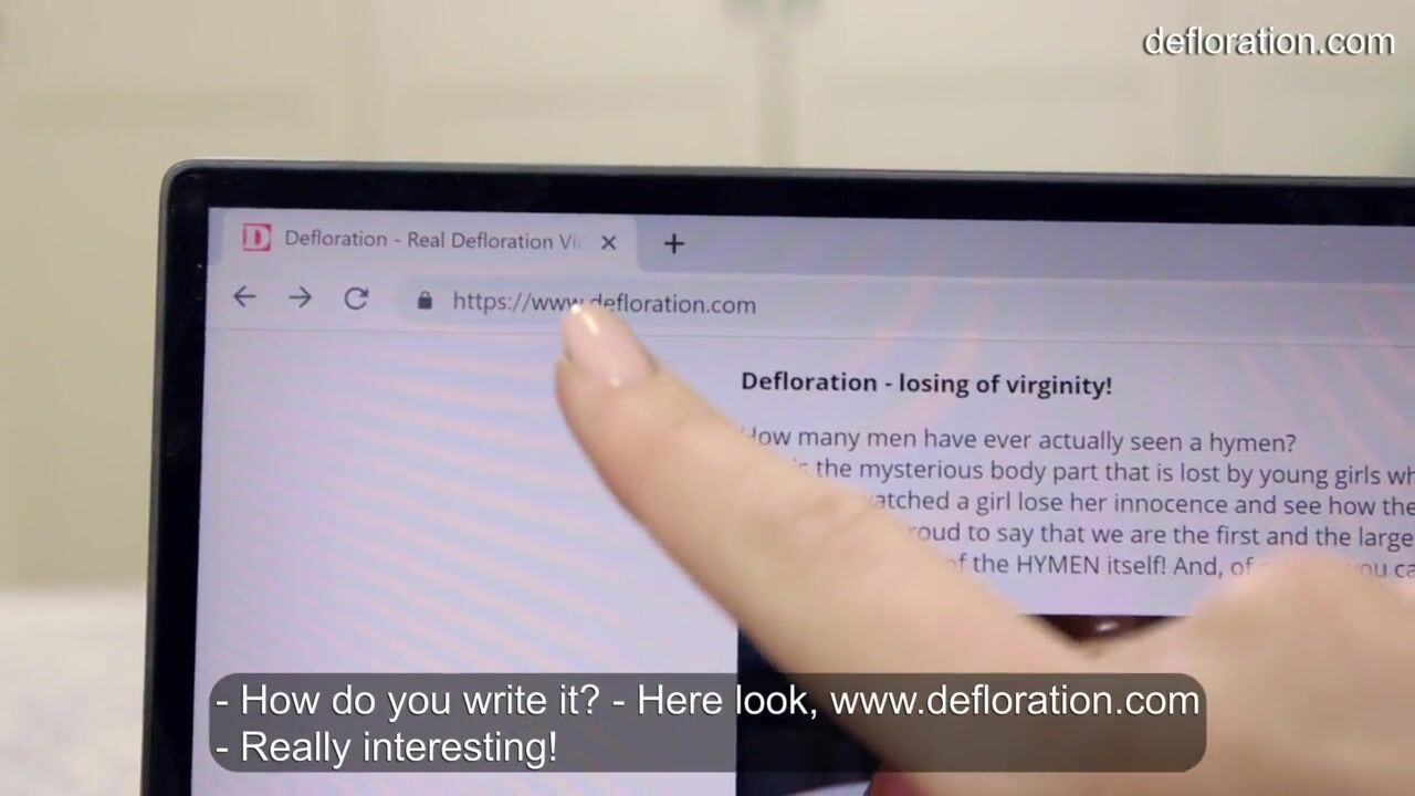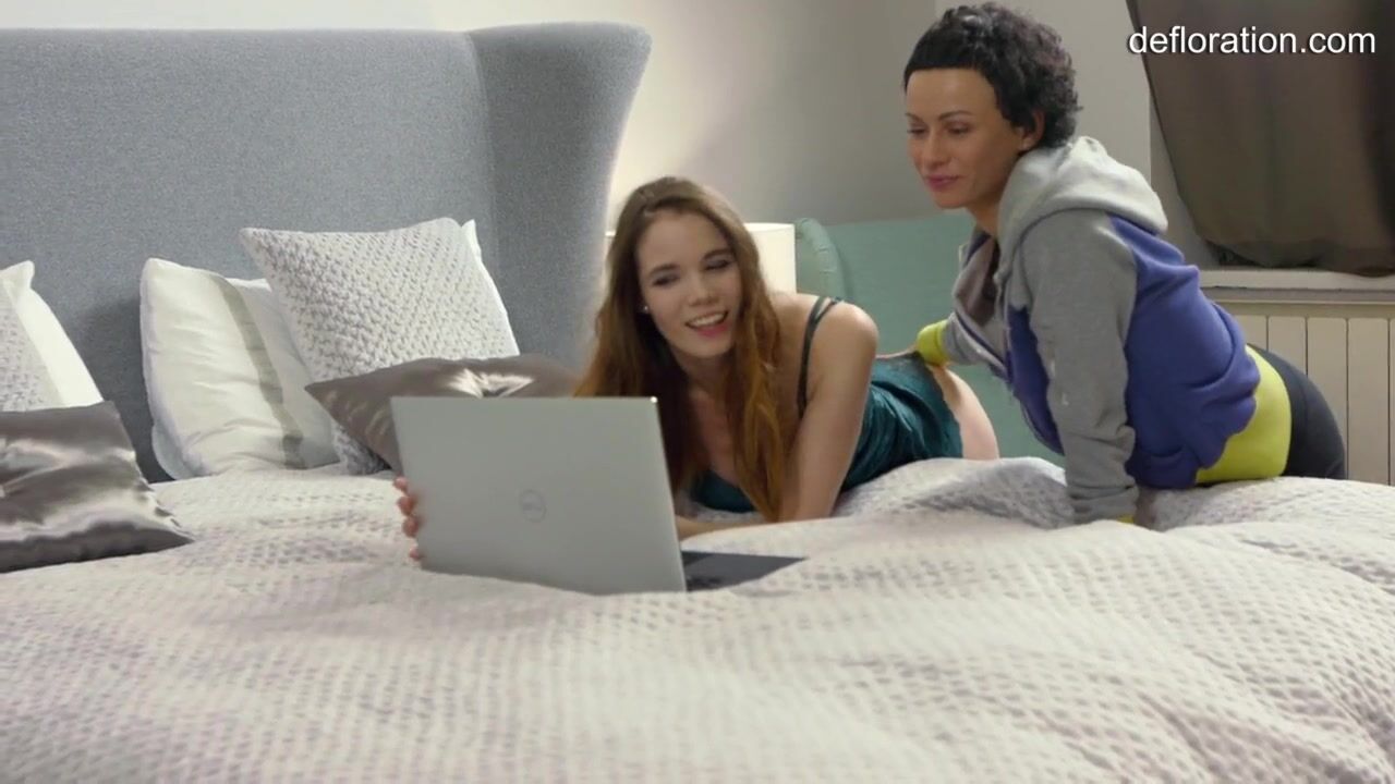 Two girls view virgin vagina through the Internet. This excites them and they fuck each other.