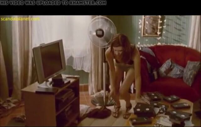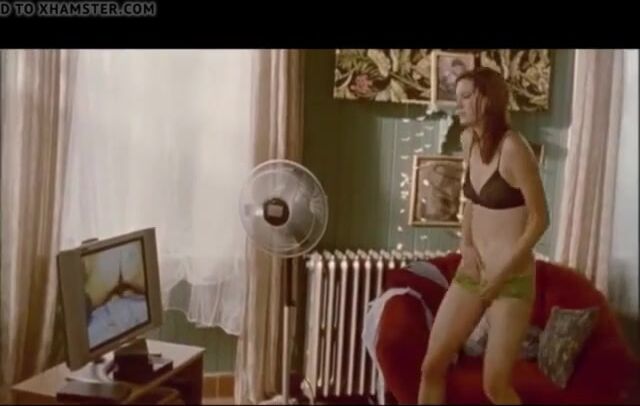 Lauren Lee Smith is playing with her pussy and gives us a good view of her nipples in a see-through black bra. She wears only green panties and begins to masturbate.