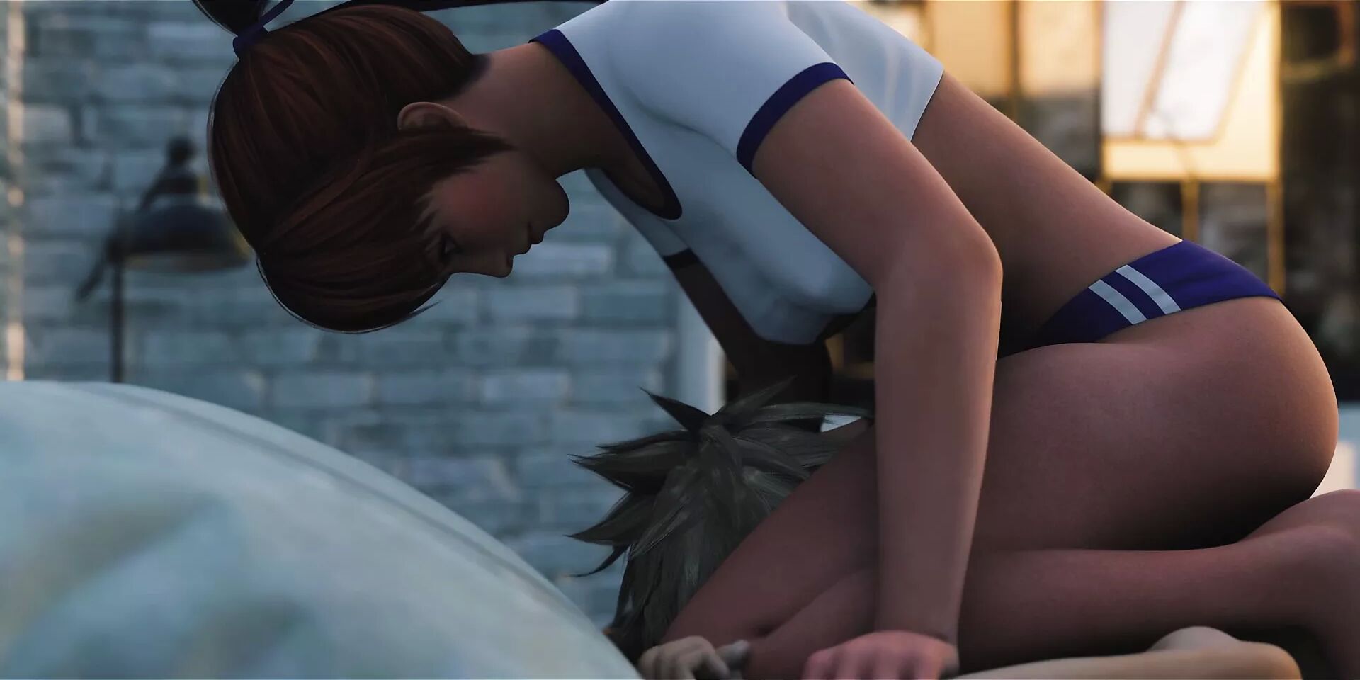 Kasumi has Cloud trapped tightly in a classic school girl pin. Then, she decide to see if he can handle her powerful legs and rolls him into a tight headscissor.