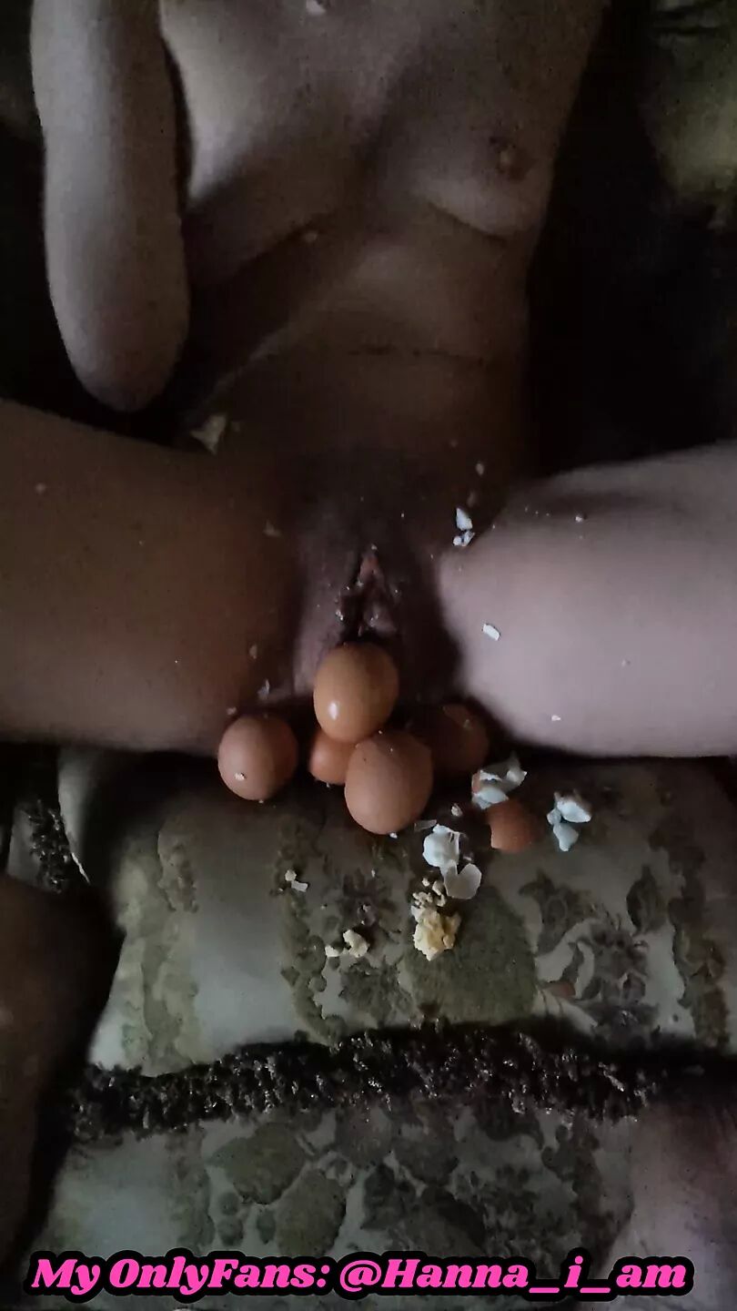 The bitch thought she was a chicken, so she put eggs in her pussy