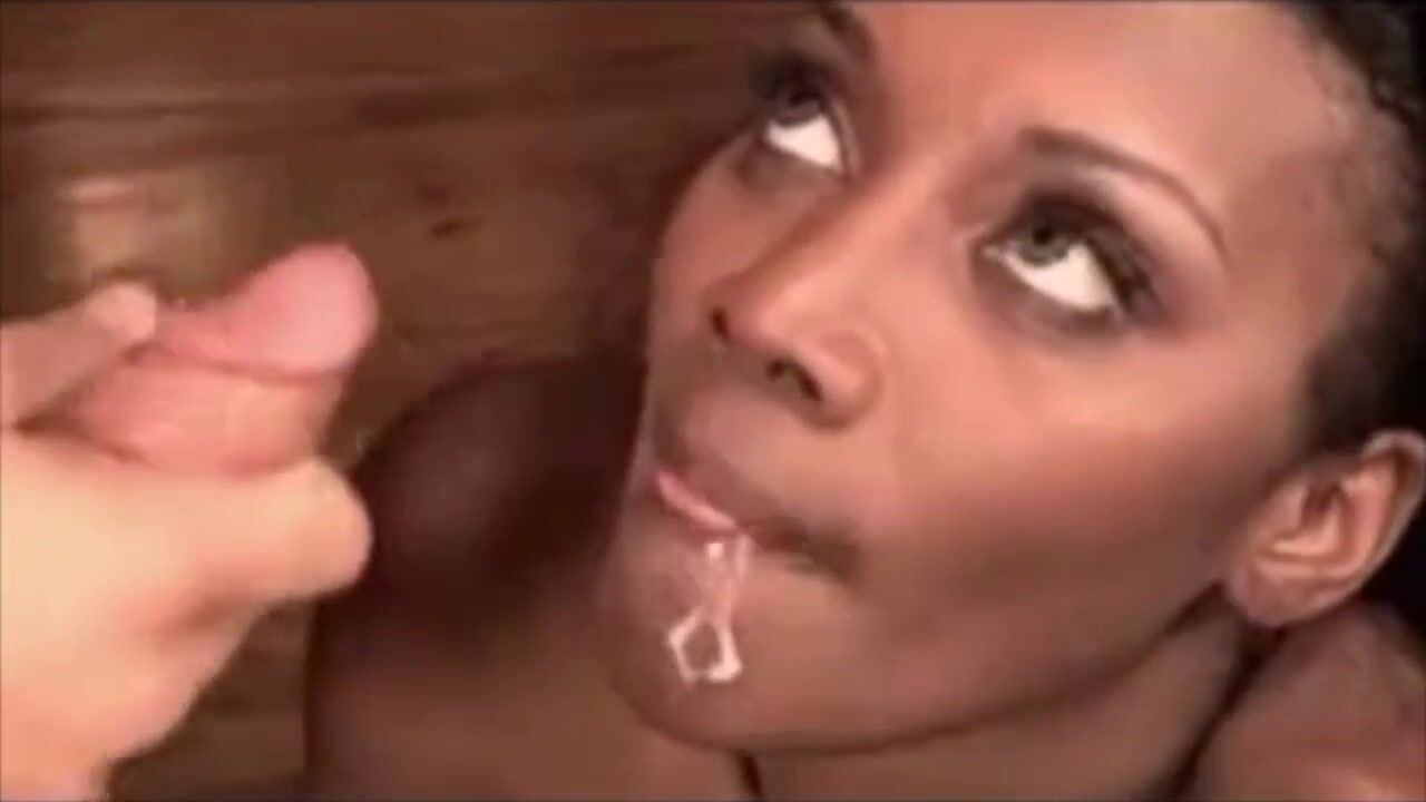 Hot ebony chicks get cum on their face, tits, ass, body, and in their mouth