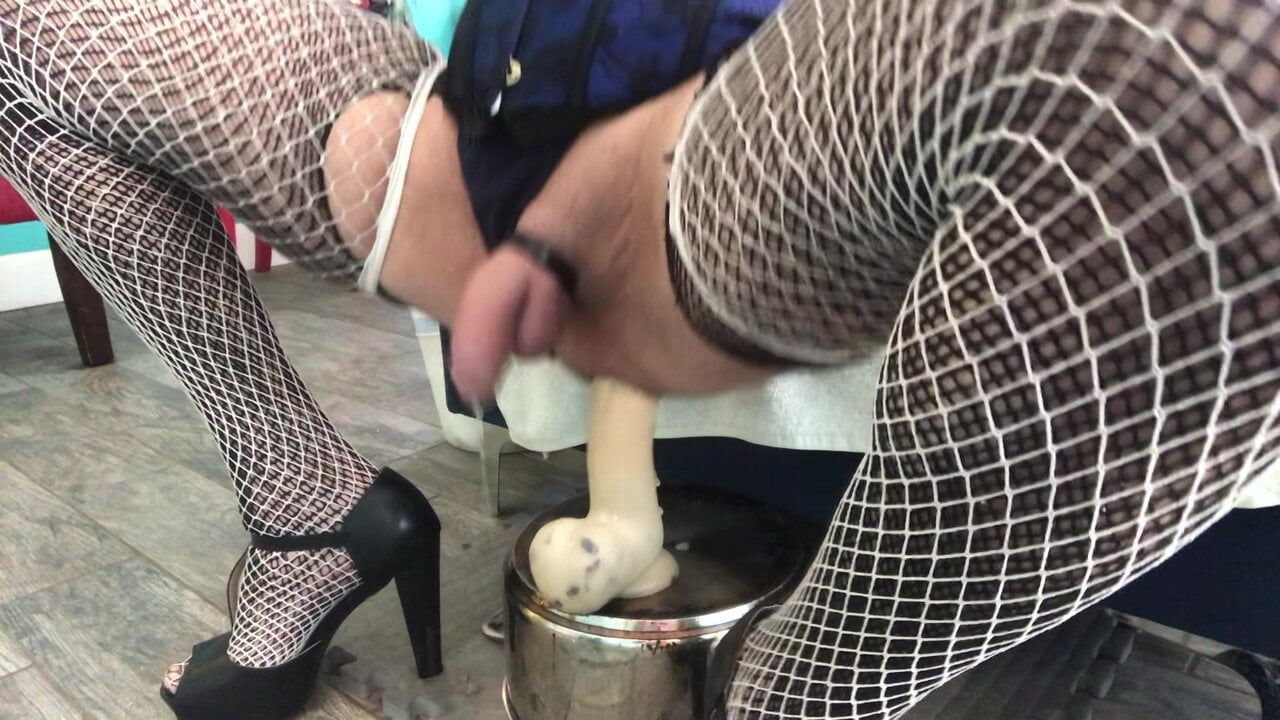 Hands free peegasm dildo ride by sissy hubby. Keeping that ass gapped for mistress wife hard at work.
