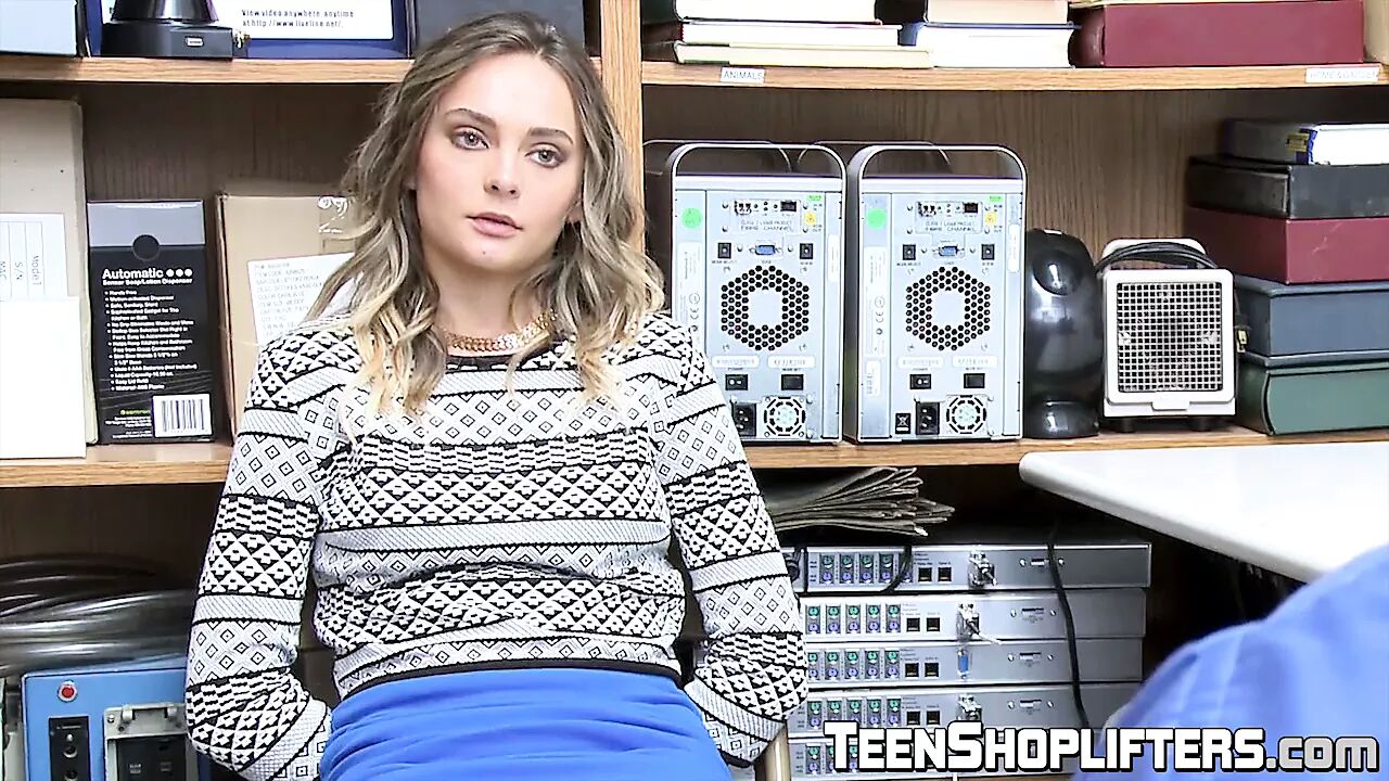 Beautiful young girl fucks a security guard in his office after being caught for shoplifting.