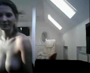 Romanian camgirl with big tits angelina does strip tease in the studio's lounge -- no pussy upclose