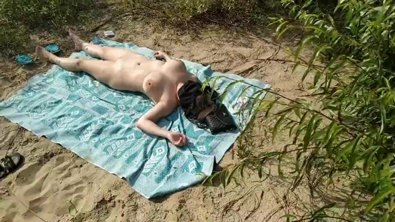 she sunbathes and I jerk off a dick and look at her