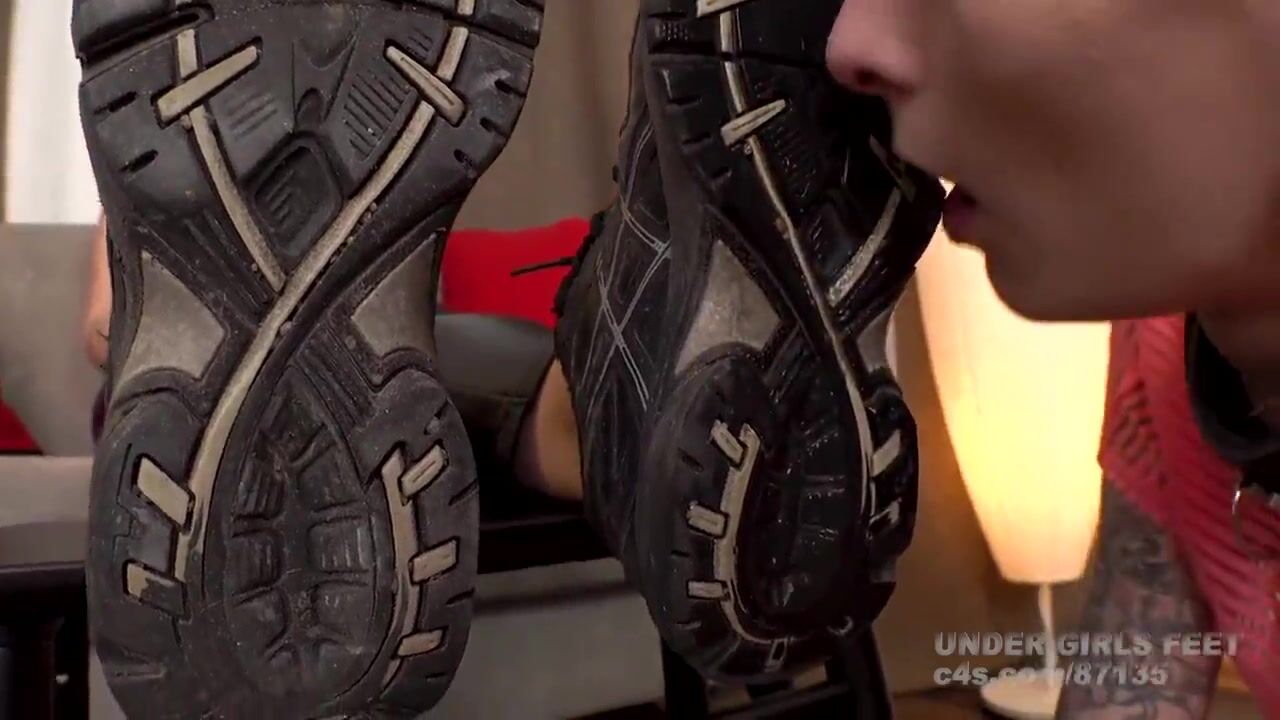 This how bitches worship black shoes, dirty white socks and stinky feet! Yummy!