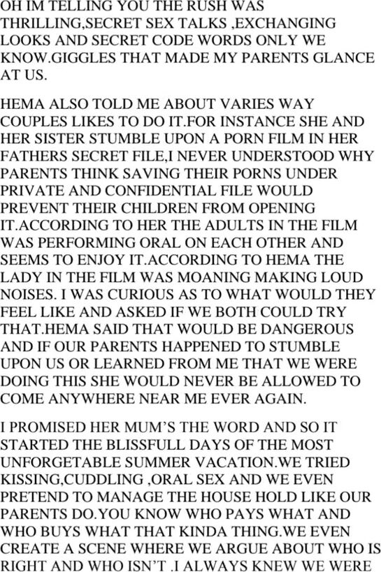 VINITHA TELLS YOU ABOUT HER ADVENTURE WITH HER COUSIN AND ANOTHER MALE FIGURE IN HER ADVENTURE.