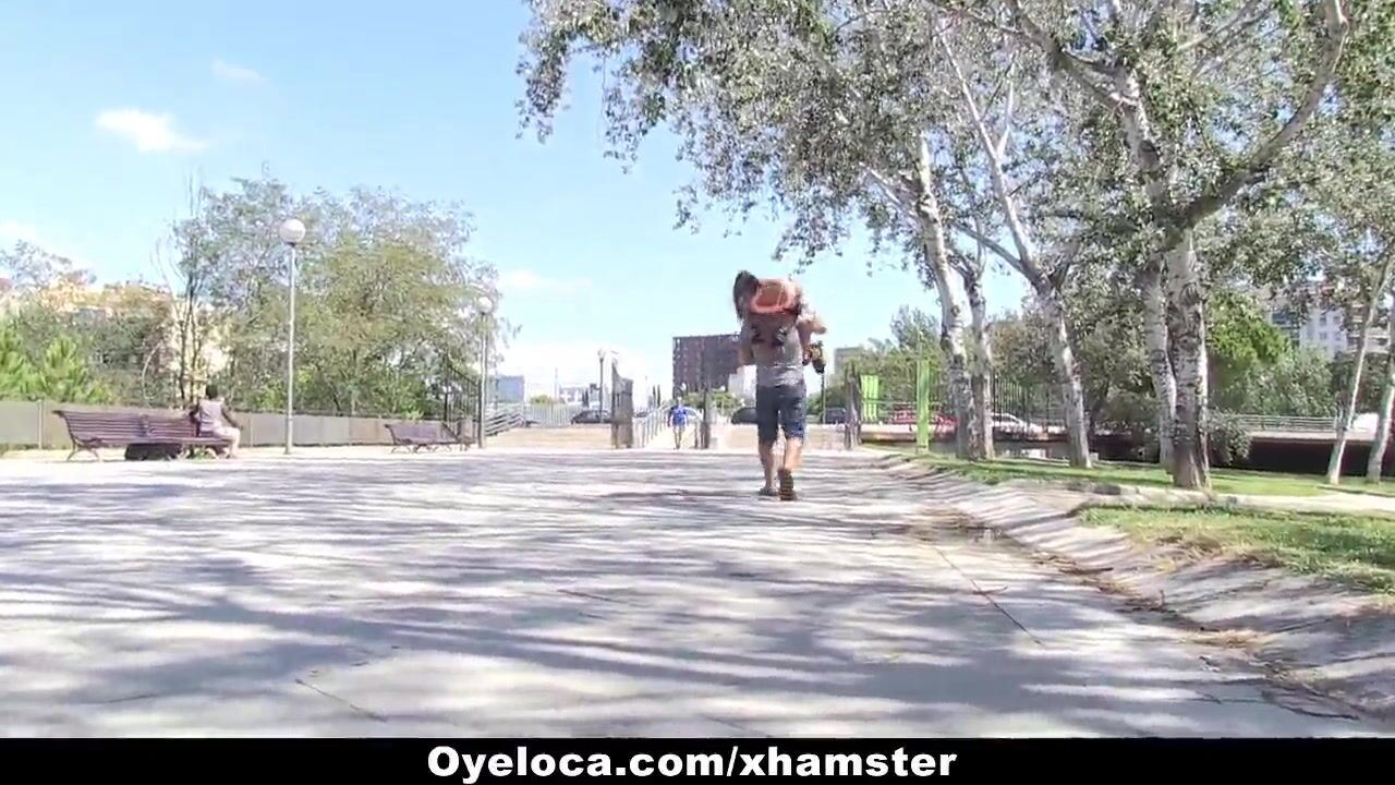 Hispanic Carolina Abril was out rollerblading when she saw a guy she found attractive. She started flashing her tits at him and flirting with him and told him if he could catch her, he could fuck her!