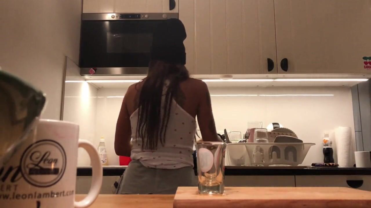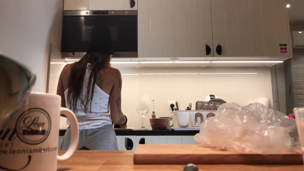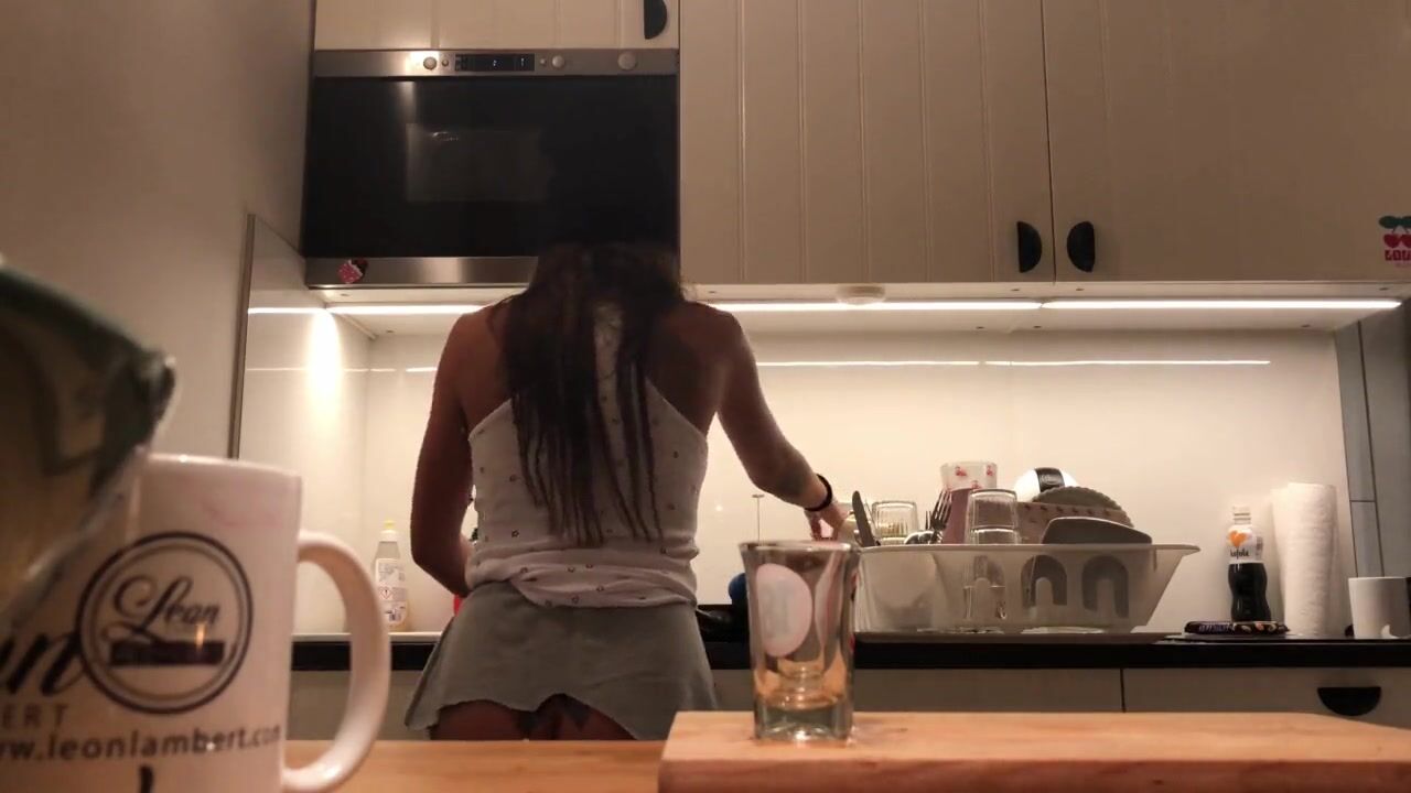 Sexy and hot tight pussy brunette hidden cam from Leon Lambert with Love and a bit more. Braless and without underwear relaxed beautiful girl do the dishes and voyeur camera is on to record all.