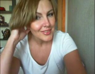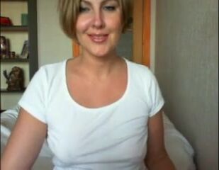 Sexy milf in white teasing on webcam