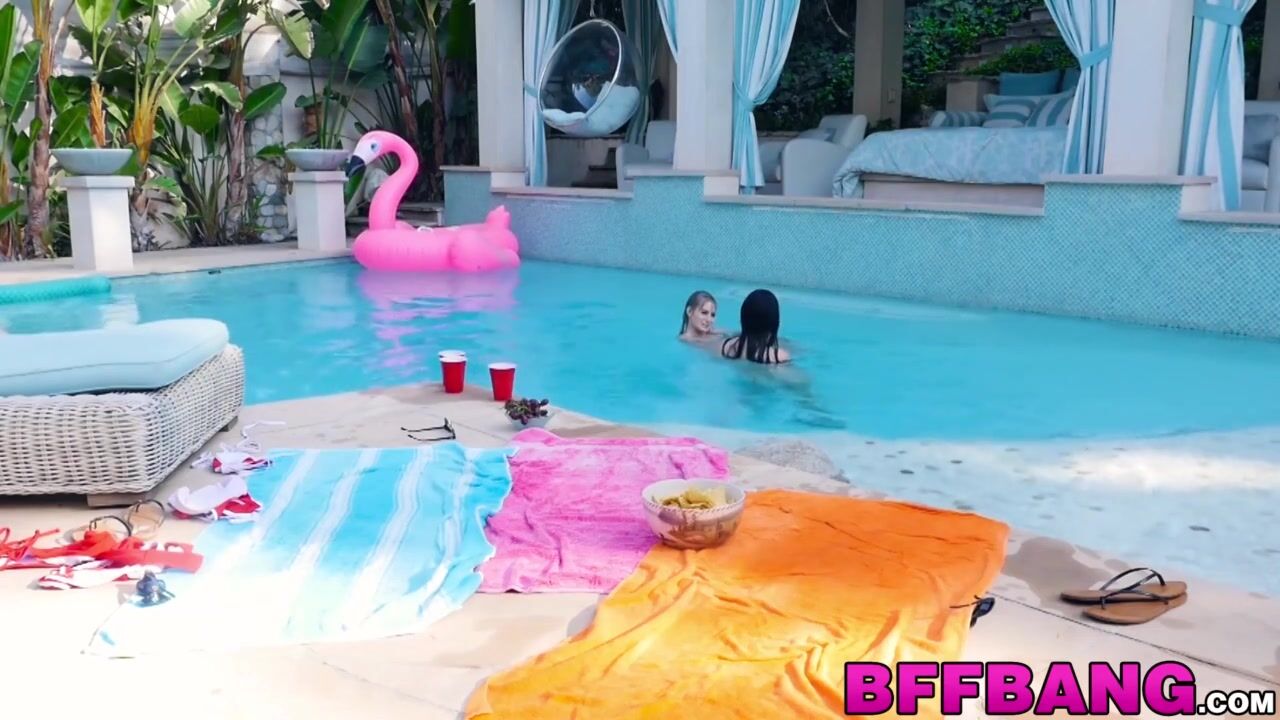 Three cute and young girls are having so much fun in the pool that they also got a bit horny, and with no guys near, they will have to do it themselves!
