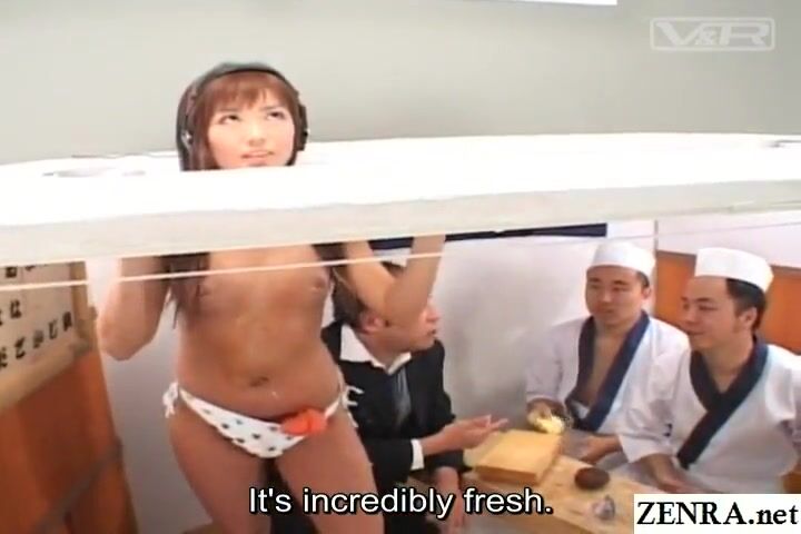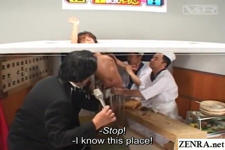 JAV perverted reverse glory hole game show featuring a tan gyaru whose body is stuck in a sushi restaurant and whose challenge is to figure out where she actually is with English subtitles