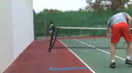 Minka and Deauxma are playing outdoor tennis totally NAKED!!