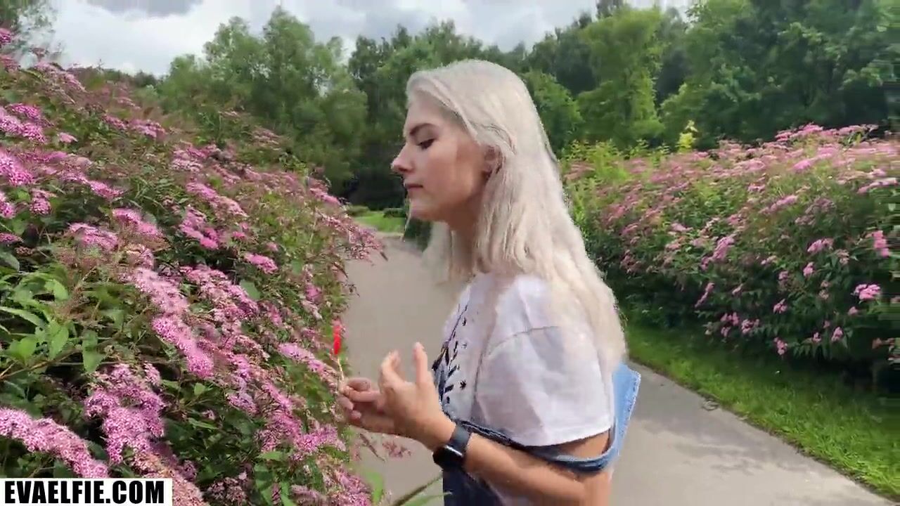 After getting fucked hard in a public place, nympho Eva Elfie risks it even more by walking around with her cum soaked panties. After taking that huge shaft in an out, this busty slut got fucked hard
