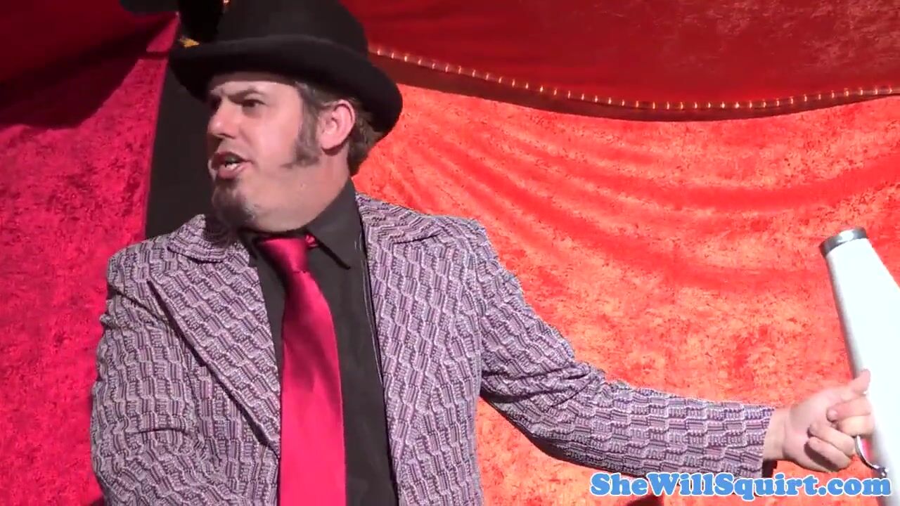 Babe squirts over audience before sharing cock in threesome
