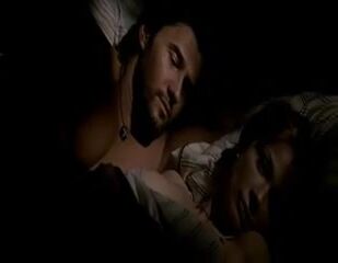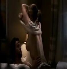 Lauren Holly naking out with a guy in bed as she pulls her tank top off over her head, exposing her bare left breast.Lauren then lays down on her stomach and he has sex with her from behind.