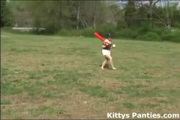 Perky teen Kitty Carson loves running around the field at the park and playing baseball. Her tight teen body looks so cute frockling around the field and knocking some balls around with her bat.