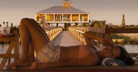 Laura Prepon topless sunbathing on a rooftop and showing off her big breasts. From Lay the Favorite.