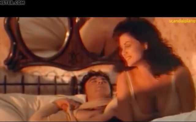 Serena Grandi exposes her sexy body. She is sitting on a guy in reverse and shows her big butt and a bit of pussy. Then, the guy removes her bra and grabs her huge natural boobs.