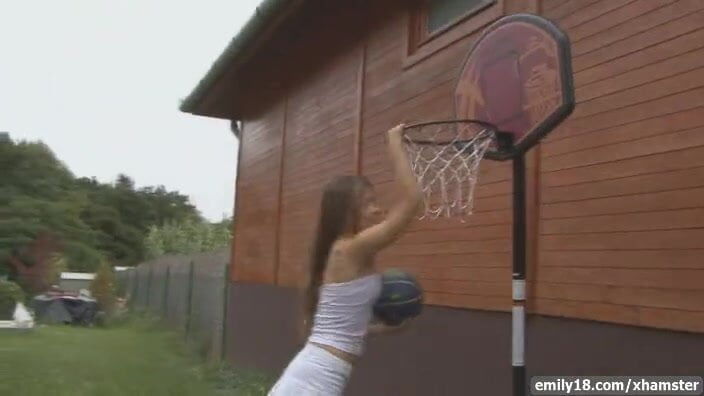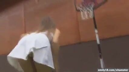 Strapless tops are always fun and Emily looks super cute in hers. Under it there is no bra and she plays basketball with her tits out for much of the video.