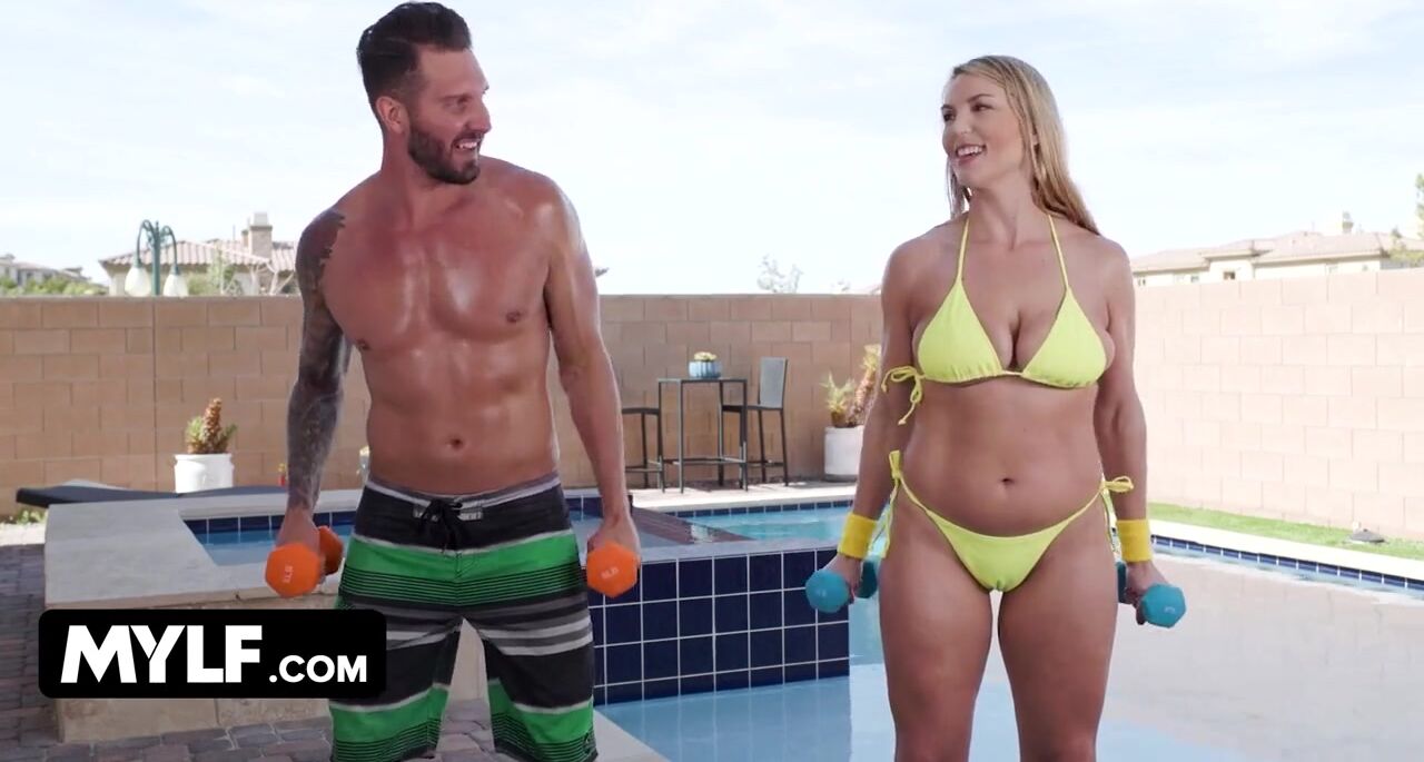 Mylf - Hot Fitness Babe Workout In Tight Bikini And Seduced Her Big Muscled Trainer