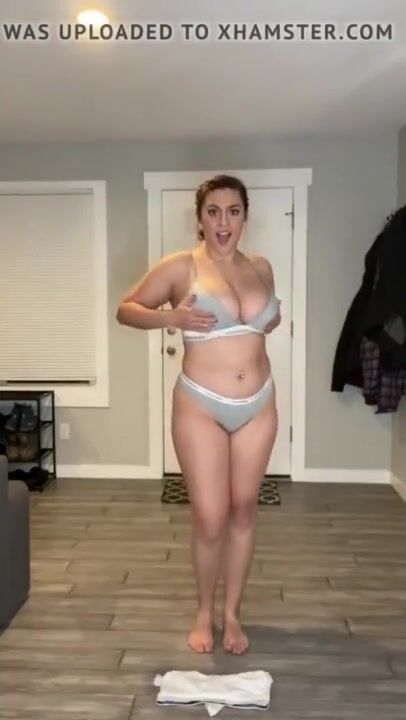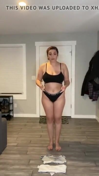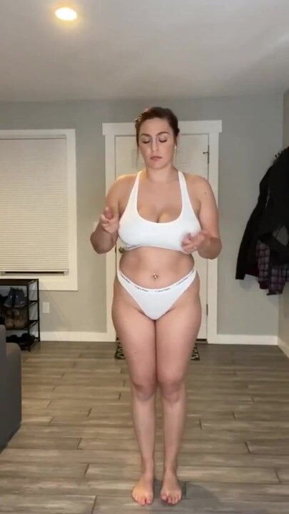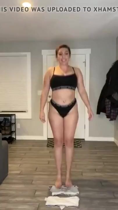 Curvy brunette strips. But who is she?