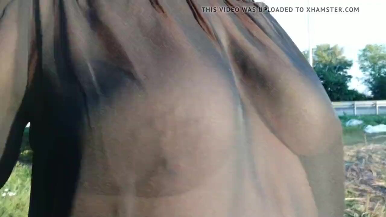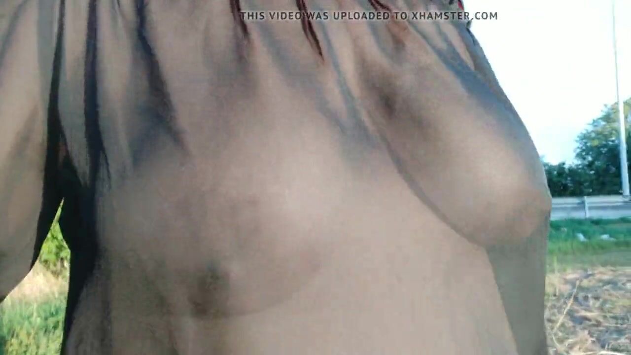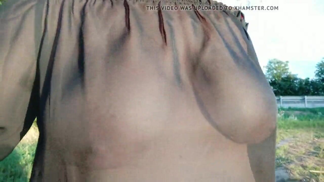 my breasts sway under my transparent blouse during my walk