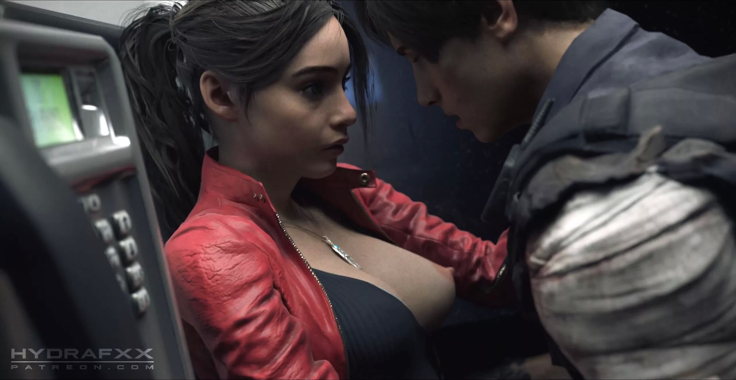 Claire Redfield And Leon In A Phone Booth