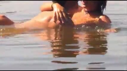 Teen couple having sex on the bathing lake