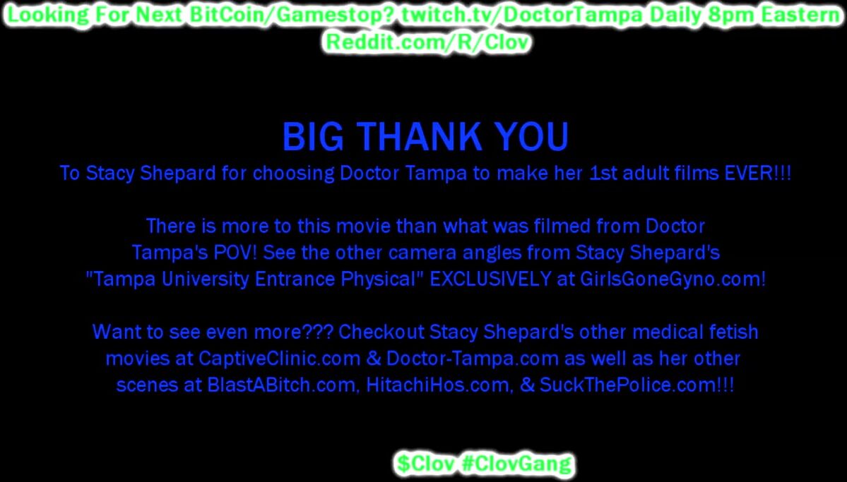 #Clov $Clov #ClovGang Become Doctor Tampa & step into the exam room’s of Tampa University to watch Stacy Shepard get her mandatory new student physical & gyno exam at the gloved hands of Doctor Tampa!