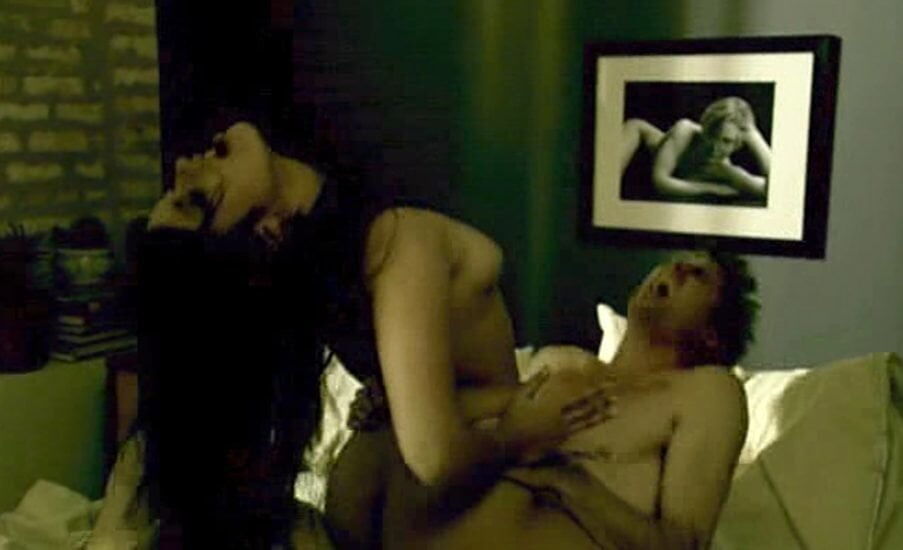 Janina Gavankar exposes her naked body in front of a photographer and after that, she has a hard sex with him. First, she is lying on her back and then, rides him on the bed.