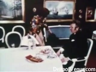 Rich lady of the house, a natural & mature brunette, invites her young butler, Godfrey, to fuck her on the table as hubby watches. From the vintage erotica archives at DeltaofVenus.com.