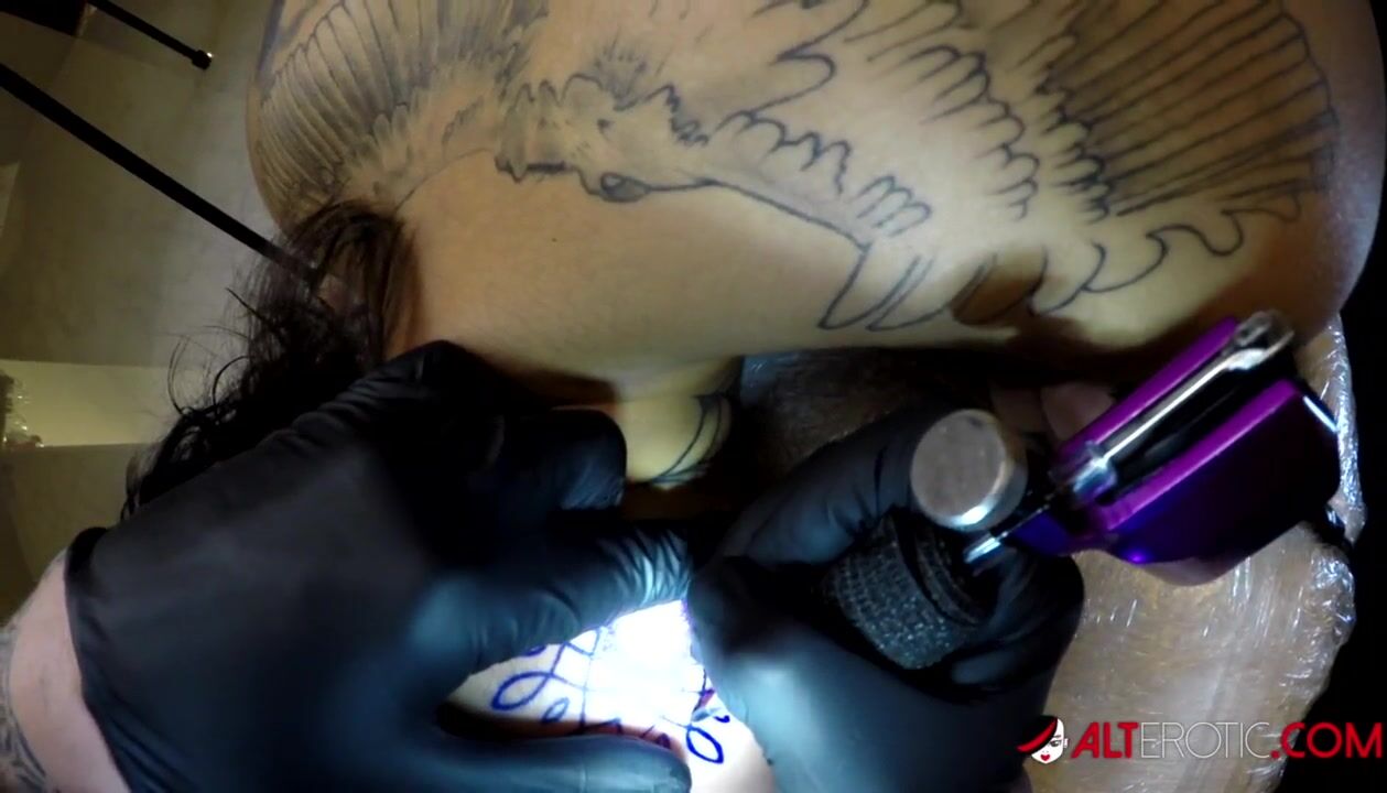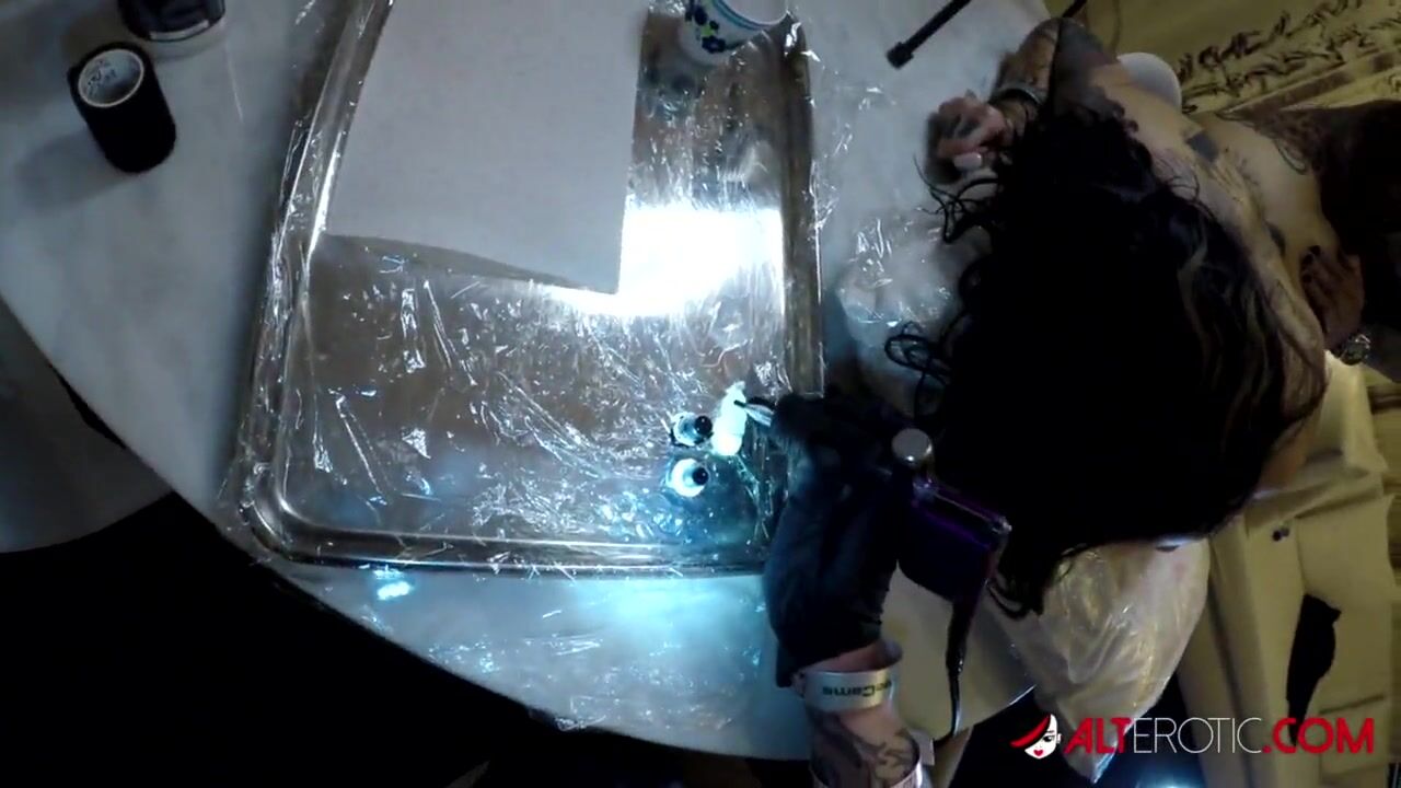 Naughty tattooed slut Genevieve Sinn came by for her new face tattoo, so we decided to have some fun with it! Once the tattoo began, Sascha shoved his cock deep inside her from behind!