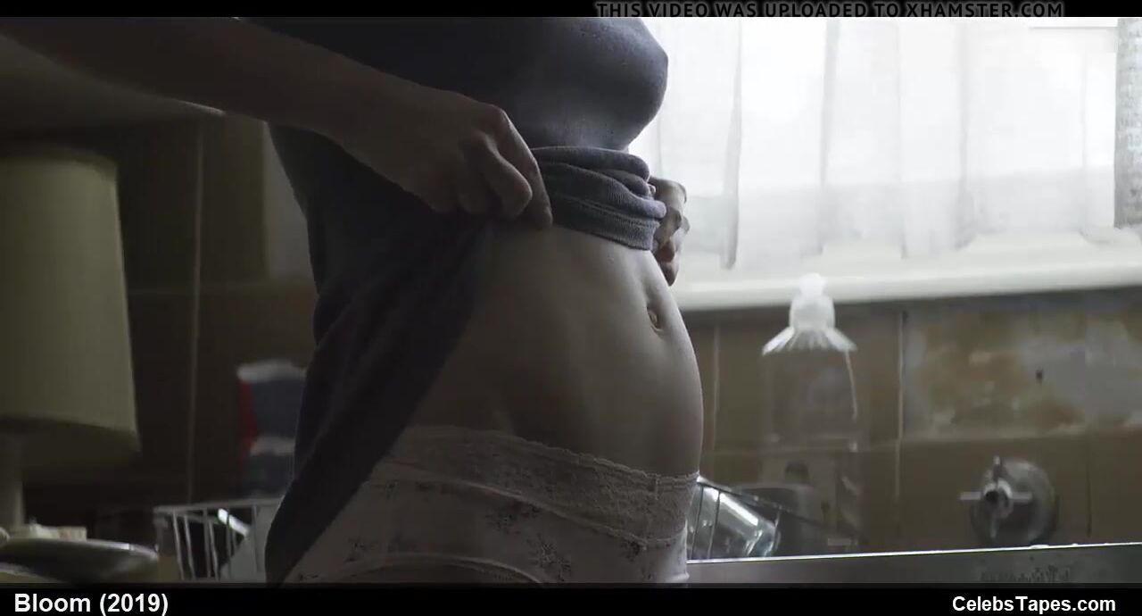 Phoebe Tonkin teasing in lace panties while caressing her pregnant belly. Nikki Shiels has rough sex laying on the back.
