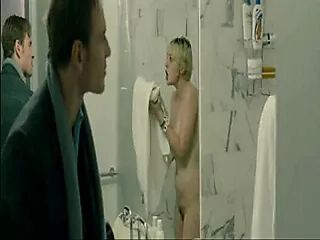Carey Mulligan nude completely stepping out of a shower when a guy surprises her in a bathroom. Carey shows bare breasts and bush… From Shame.