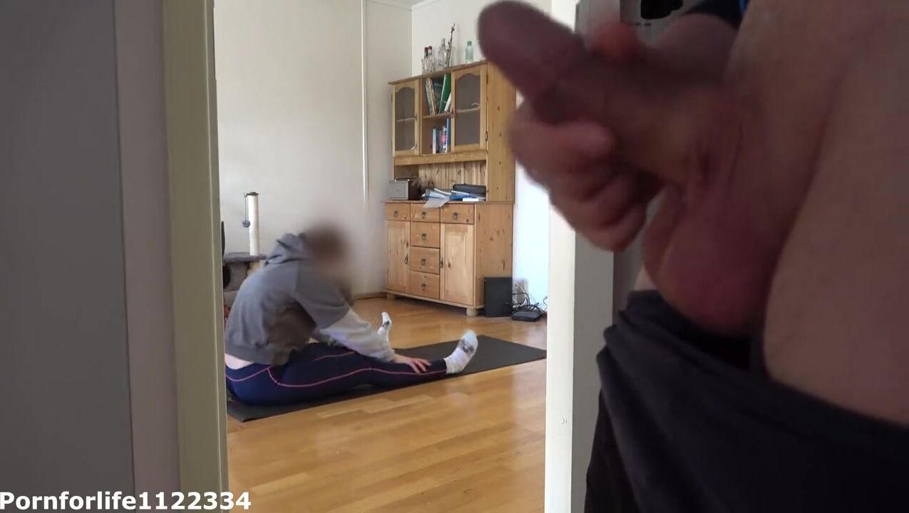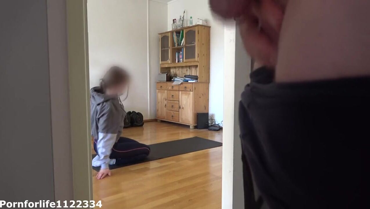 I love to watch how my stepsister is doing yoga and jerk off