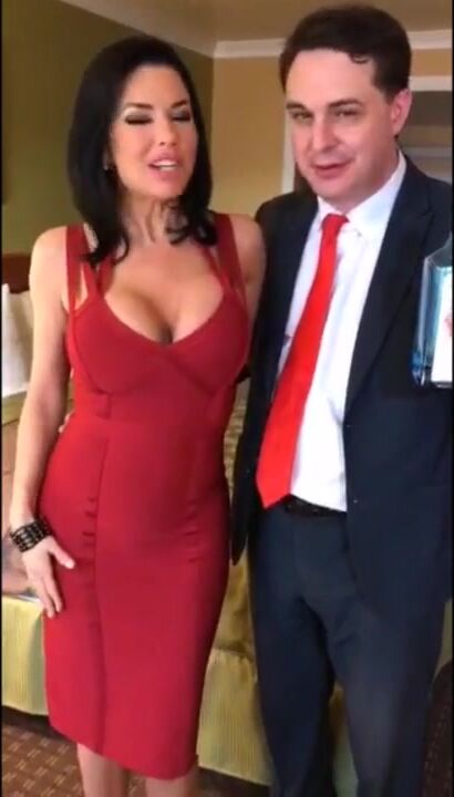 Los Angeles, California, USA, February 2017 - The American pornstar Veronica Avluv squirts in the mouth of the art critic and lawyer Andrea Diprè. Before he makes an handjob after she undresses.