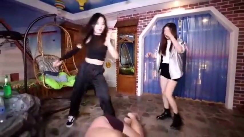 Two Chinese girls dominate a slave and make him lick there shoes, vans sneakers and doc marten boots