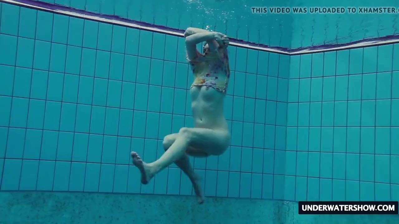 Hot and horny teen Lera undressing and showing her hot body in the pool in Czech
