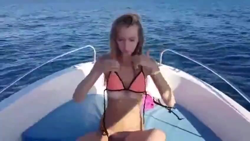 girl is sailing a yacht and make striptease