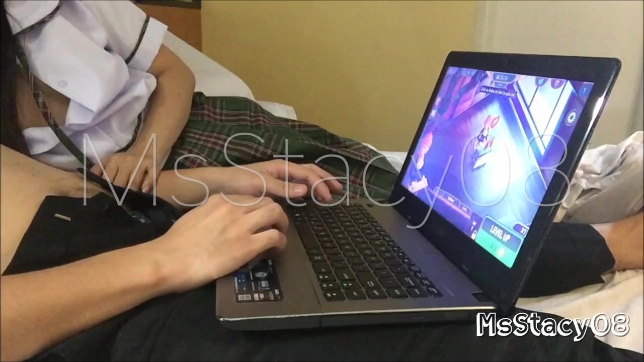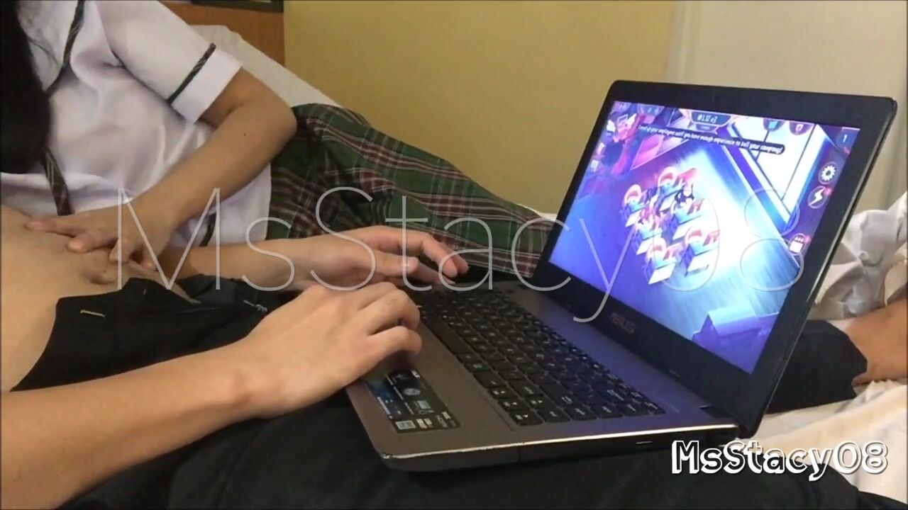 Two College Students are playing online game inside a hotel room they enjoy playing it until the girl did something to him, the girl classmate is now very horny, she touched his private part and....