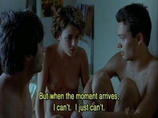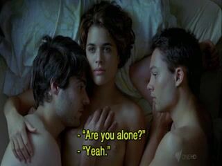Adriana Ugarte naked lying in bed with two guys. Enjoy this hot threesome scene. From Castillos De Carton.